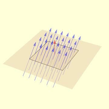 Du får själv välja åt vilket håll ytan ska ha sin positiva normalriktning. Om man ska beräkna ett flöde upp genom en yta är det bekvämt att låta den positiva normalriktningen (den röda pilen) peka uppåt, så här: