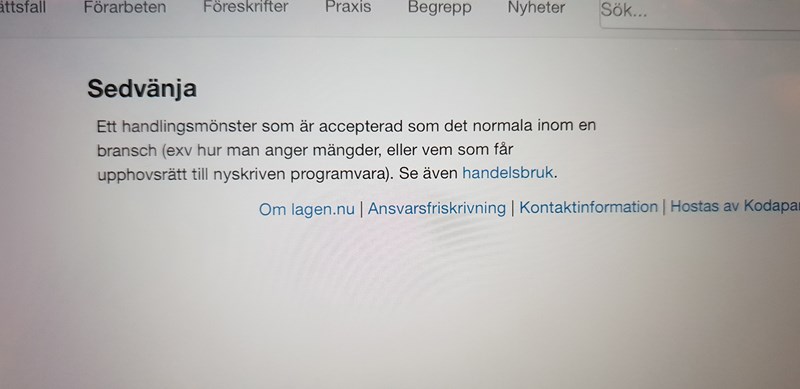 Sedvänja är något som inte är reglerat i lag eller föreskrifter utan ett sätt att agera i en branch som är accepterat som alla känner till.