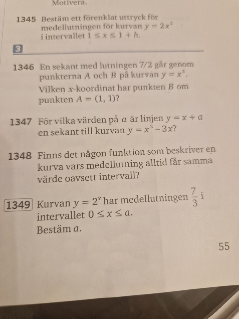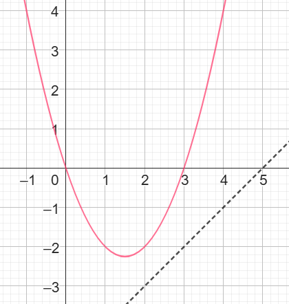 Okej, tycker du att detta duger eller ska jag också motivera hur jag vet att sekanten skär parabeln i två punkter?