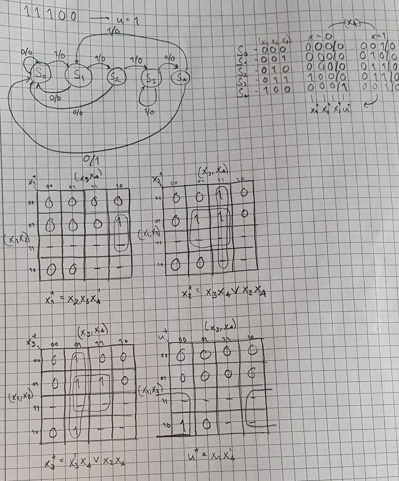 Jag fick dock höra att den går att lösa med fyra tillstånd och inte fem. Om det stämmer, hur bör tillståndsgrafen då se ut?