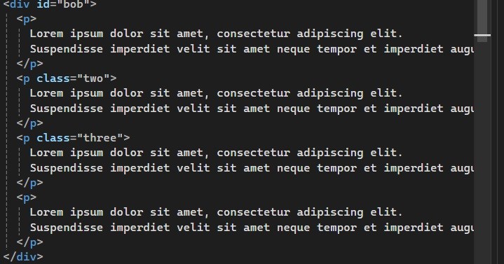 Andra divven är ju #bob men texten i sista stycket är ju inte .two? Det finns ju fyra stycken p i denna div?