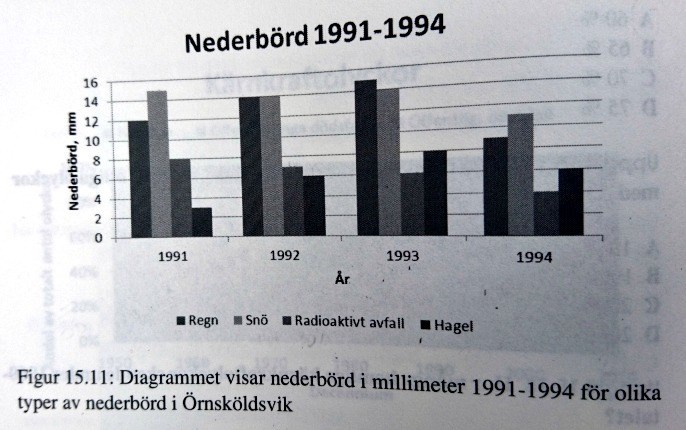 Det var i alla fall bara två åe när det var mer snö än regn, så man behöver inte räkna på 1992 eller 1993. För övrigt har jag aldrig tidigare hört talas om att man mäter radioaktivt avfall (menar de nedfall?) i mm!