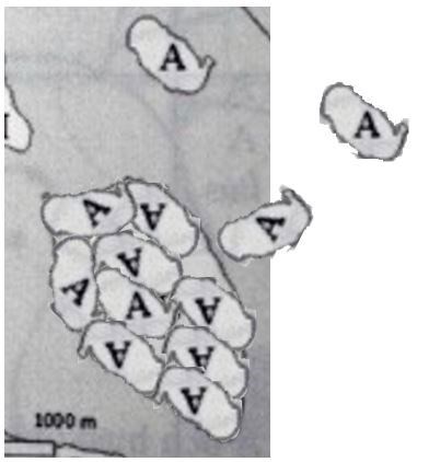 Hur vet du det Yngve? Jag ser mindre än 9, eftersom den nedre del av ön B är kanting och trång. Jag vill gärna veta hur du kan se dig med blotta öga ifall jag har en liknande fråga!