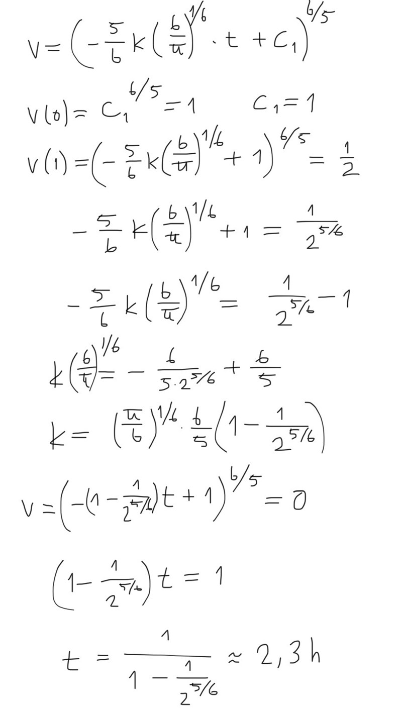 Laguna skrev:k borde kunna divideras bort. Allt är proportionellt mot den: utströmningshastigheten, och därmed hur mycket som har runnit ut på en viss tid.