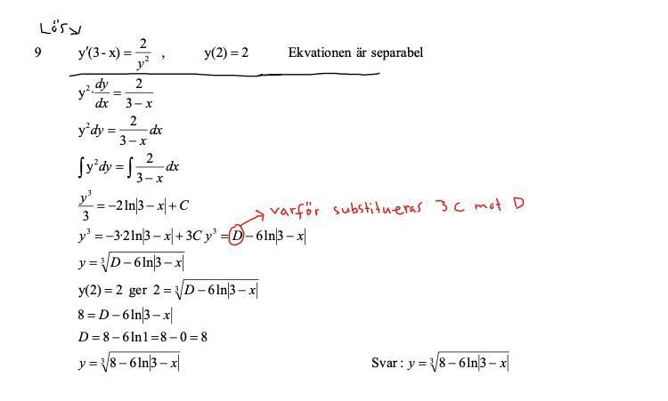 Det som facit kallar konstanten kan lika gärna skrivas vilket ger ekvationen