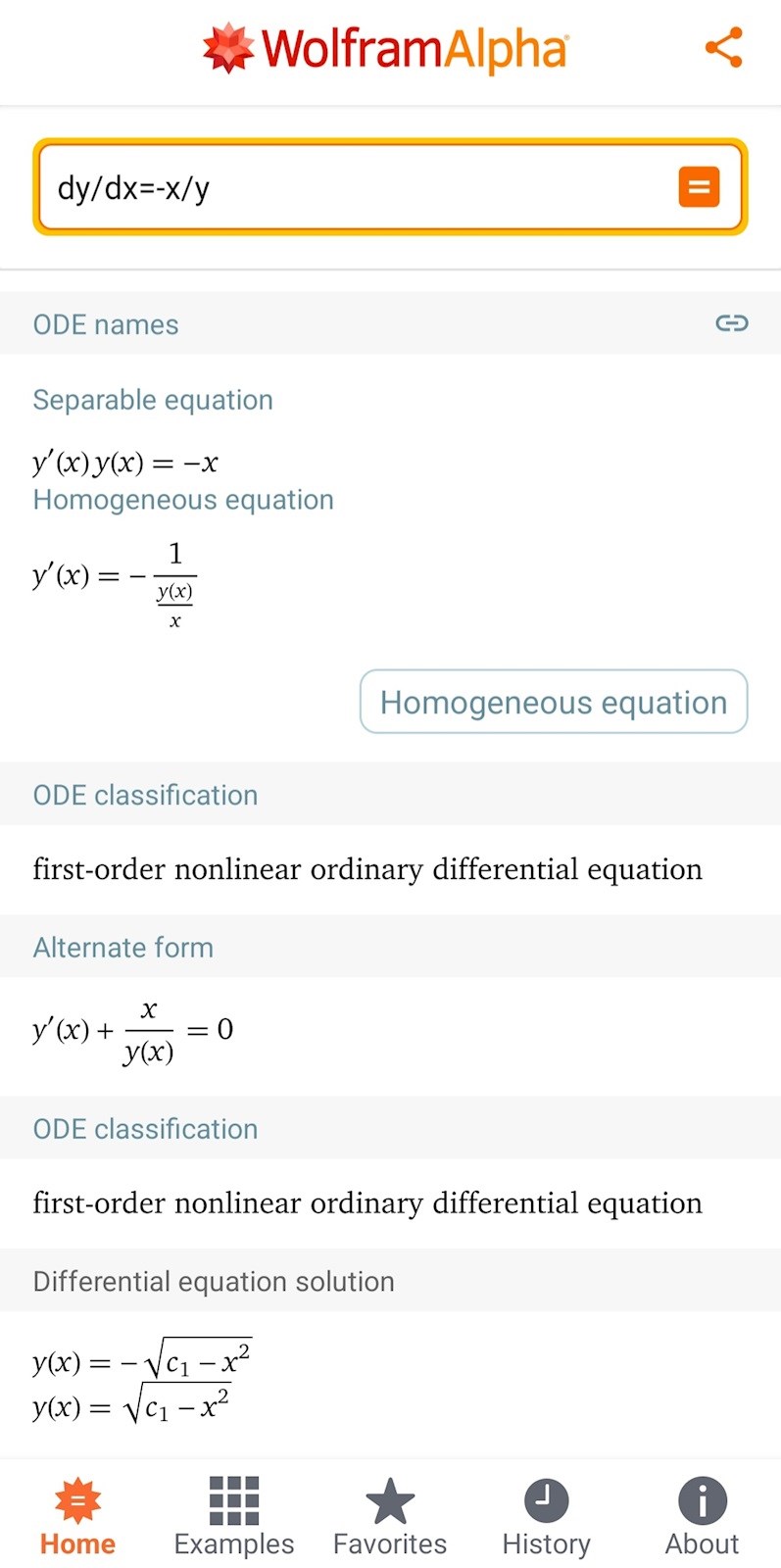 Man ska lösa uppgiften enligt metoden (andra bilden) men jag får ändå inte samma svar som facit. De fick y=-+sqrt(x^2+c). Jag vet inte varför det skiljer sig