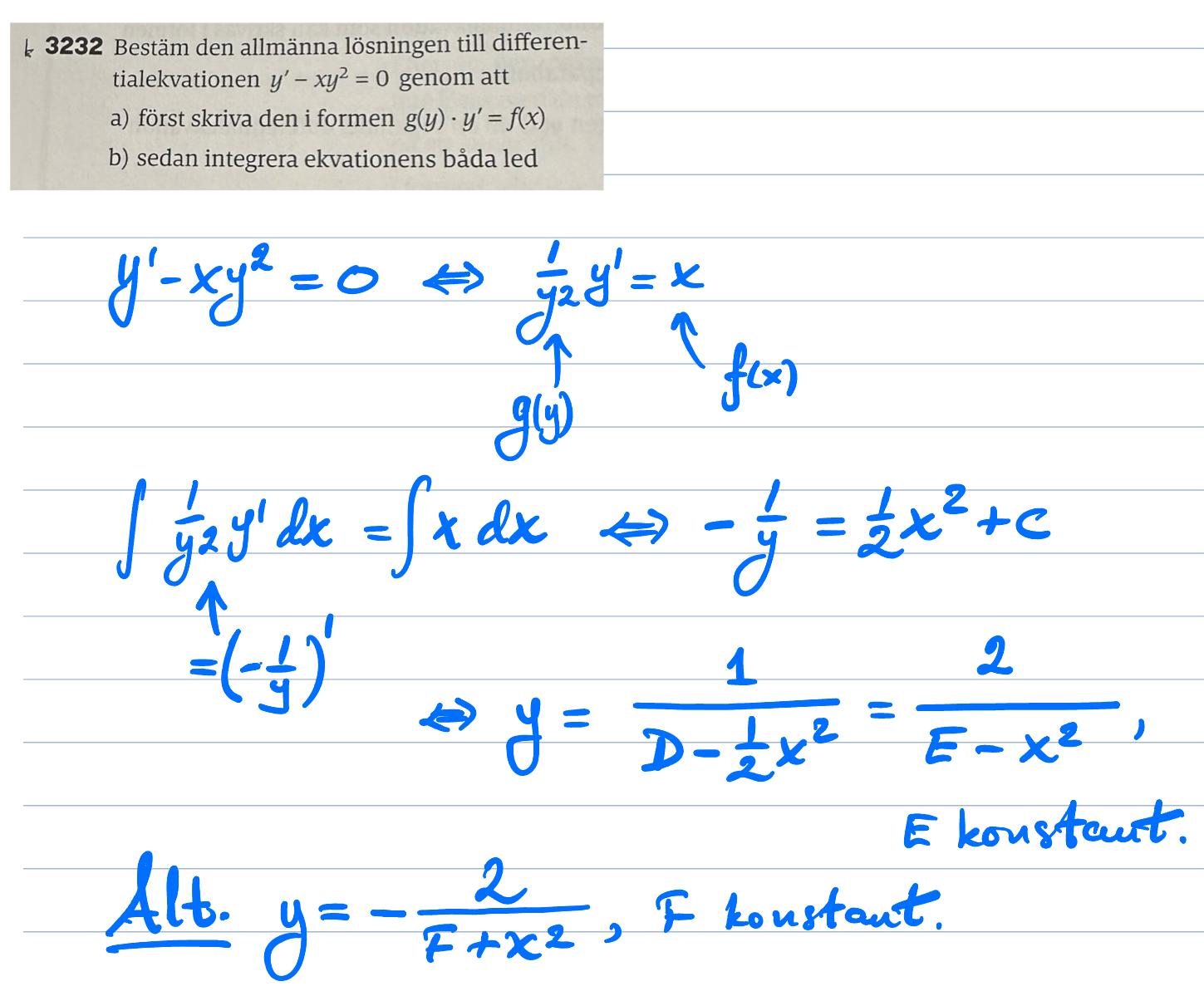 Facit säger y = -2 / (x2 + D). Hur ska jag gå tillväga dit??