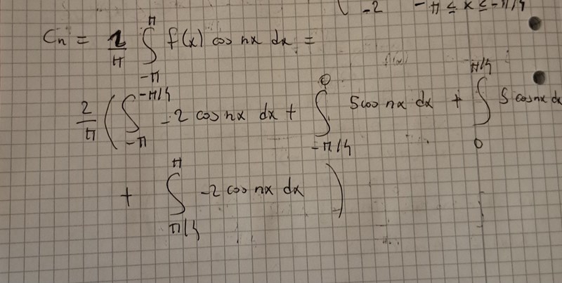 Ok. Jag tittade på någon som pratade på even and odd extension of a function. Den even delen så förstod jag som att det ska bli såhär. Funktionen ska bli symmetrisk kring y-axeln som du sa. Är det rätt att göra så? Då får jag Cn är lika med detta nedan: