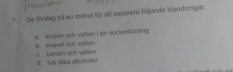 Jag behöver hjälp med a och c upggifterna. Jag har gissat på svaren. Svaret var att a) koka och c) filtera
