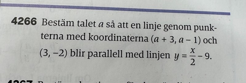 Jag satte in de två kända värdena i Ekvationen y=x/2-9