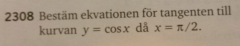 HT-Borås skrev :Som du ser går din föreslagna tangent y = - x inte genom punkten ifråga (π/2, 0) utan genom (0,0).