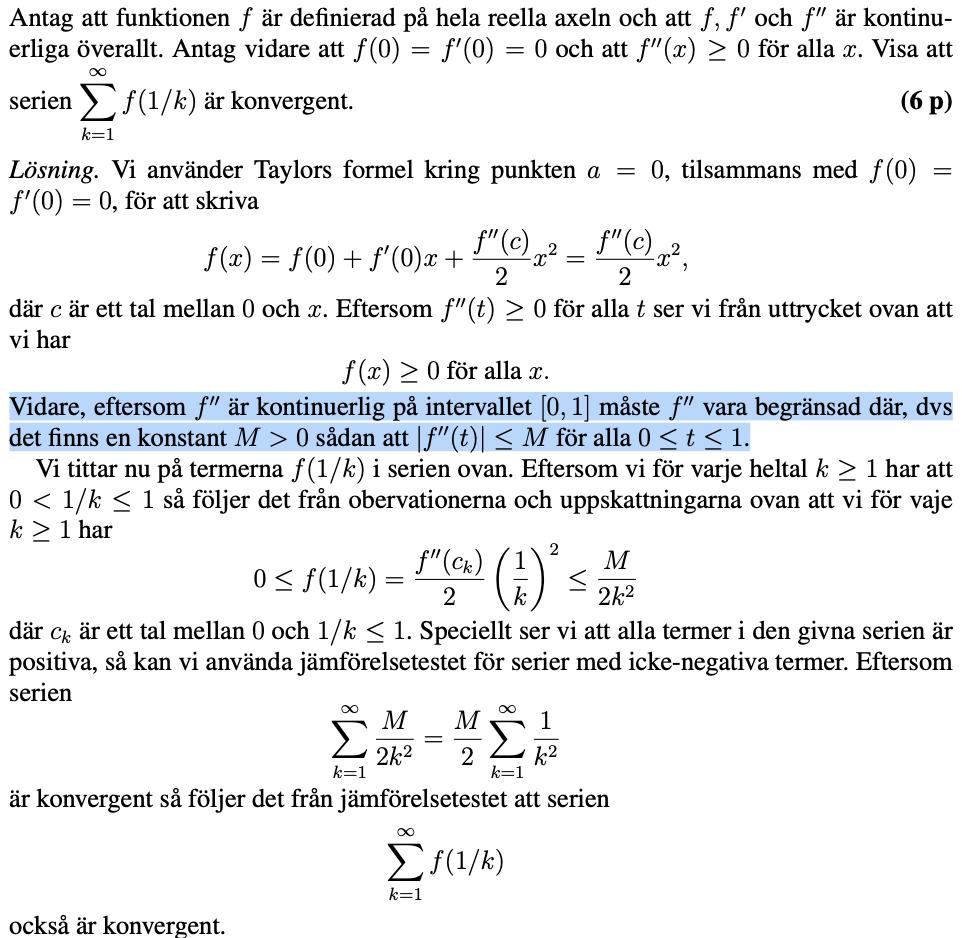 Hej, vad försöker man resonera fram till genom att säga att f'' är begränsad på ett intervall, och varför vet man detta? Förstår att f'' är kont på hela reella axeln, och således är begränsad på ett slutet kont intervall, men har svårt att se hur man resonerar fram och vidare från detta.