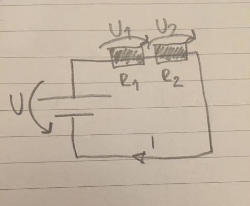 U var lika med 5 som tidigare nämndes, vilket innebär att U1 + U2 ska bli lika med 5.
