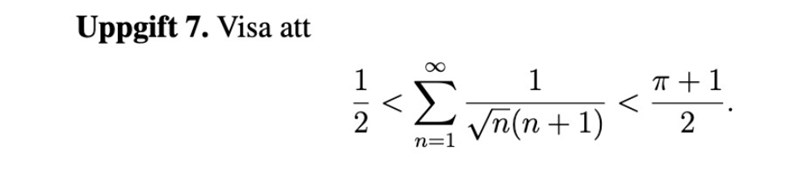 Men när jag gör så får jag att serien också är lika med (π+1)/2 och är alltså inte mindre