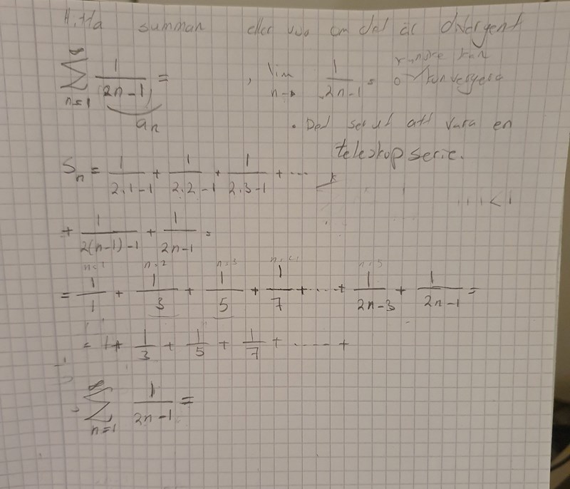 Jag försökte räkna partiel summan men lyckades inte med att få fram en formel för det.