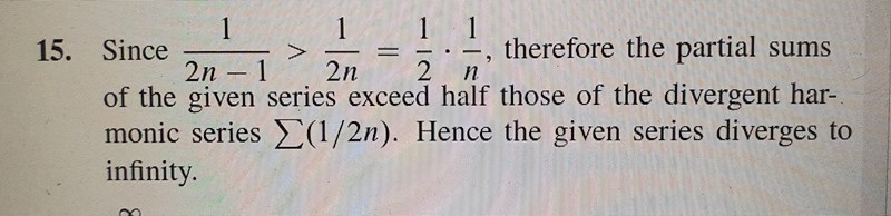 I facit de har bara jämfört 1/2n-1 med 1/2n och skrivit eftersom 1/2n som är mindre divergerar så kommer även 1/2n-1 divergerqr.