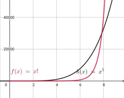 Fakultet vinner mycket hastigt över en potensfunktion:
