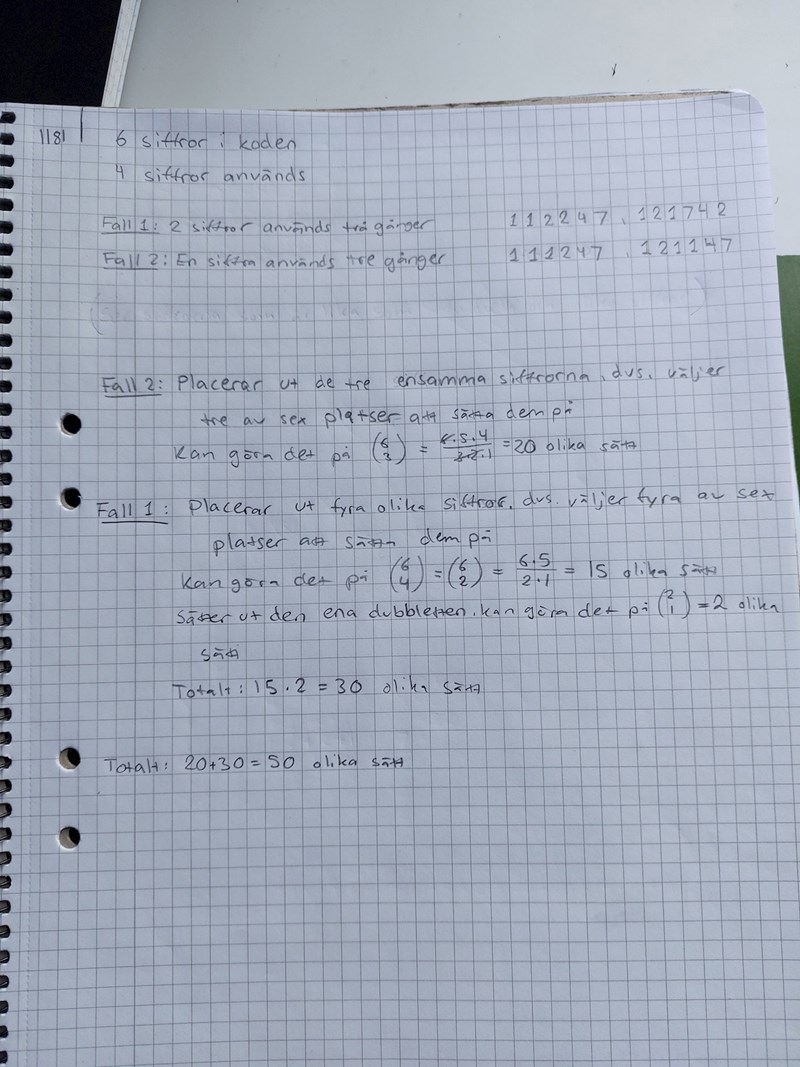 Välj vilka siffror som ska användas två ggr på 4 över 2 olika sätt