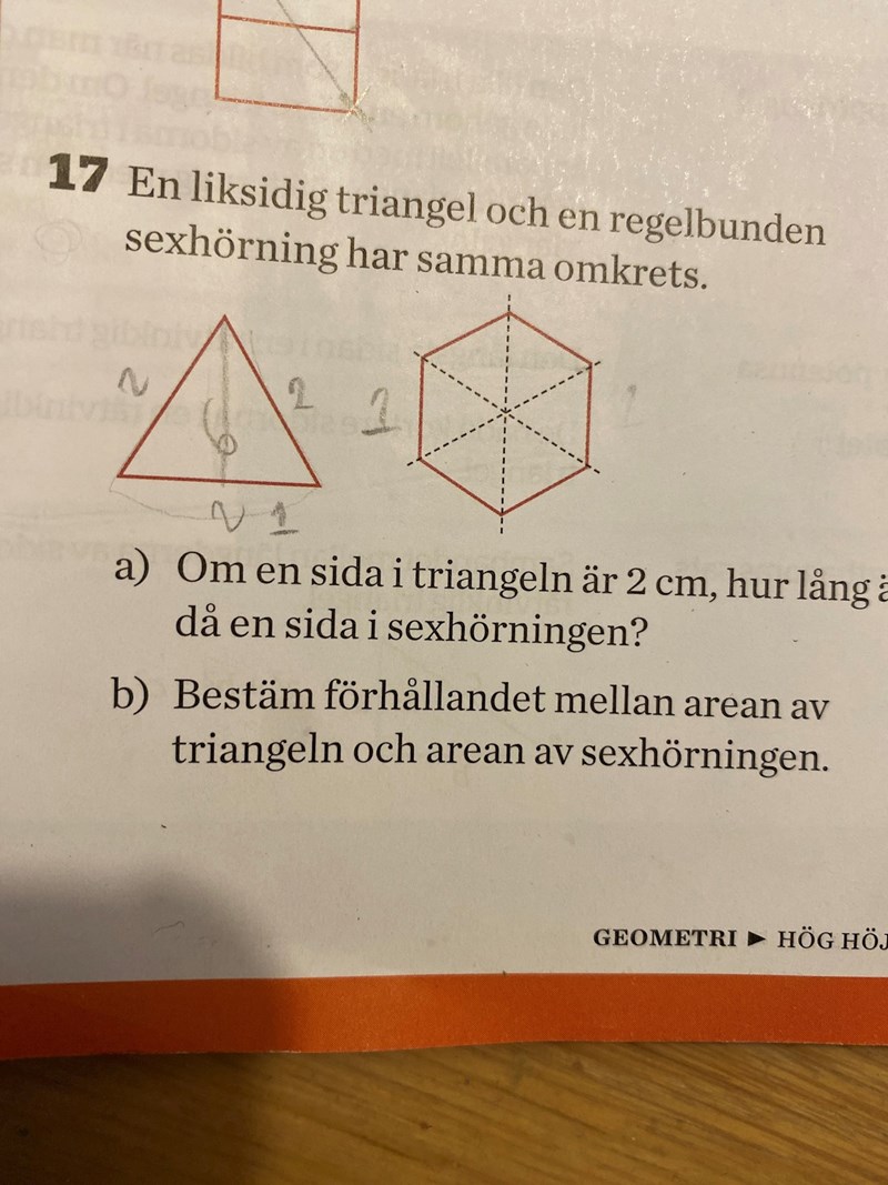 Får jag anta att alla sidorna i sexhörningens trianglar är 1 cm?