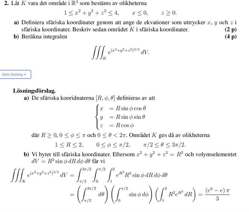 Hejsan! Fastnat på a) på denna uppgift och vore asglad för hjälp. På området för phi, så får jag att sin(phi)<=0 och cos(phi)>=0 och därför borde området vara 3pi/2<=phi<=2pi? Men får fel, hur ska man tänka och varför är det fel?