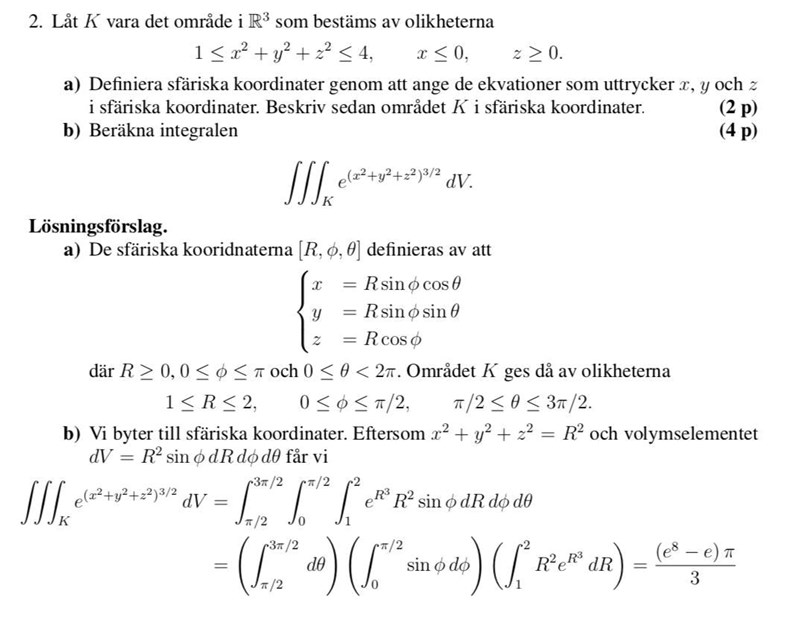 Sfäriska koordinater, trippelintegraler, flervariabelanalys