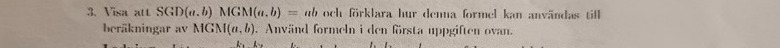 Innan vi försöker visa något, kan du först räkna ut SGD(a, b) och MGM(a, b)?