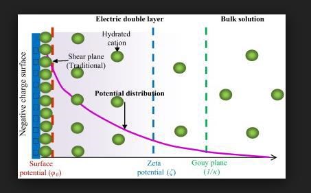 3) och inte zetapotential - är det ytpotential men med double layer också? (obs - förstår fortfarande inte ytpotential!)