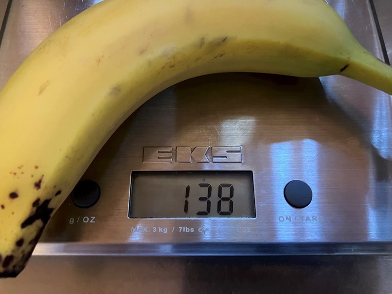 Min banan väger alltså gram.(Det tror jag är vad Peter försöker förklara ovan, med avrundningsövningen.)