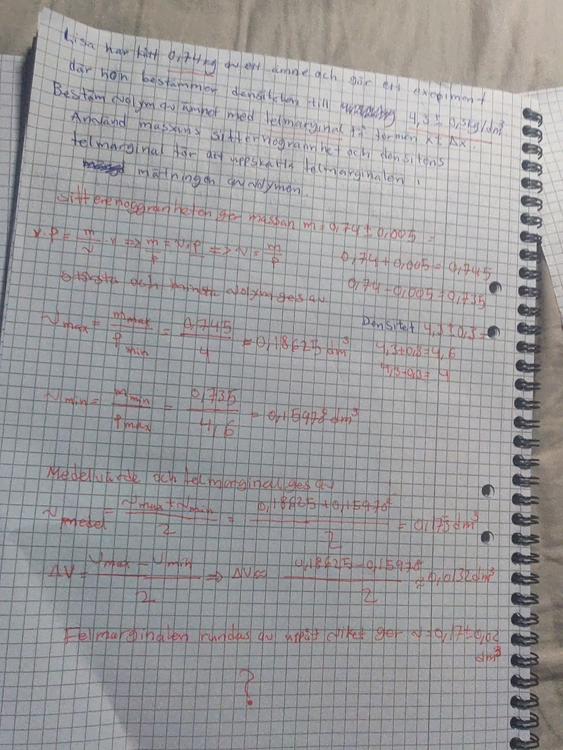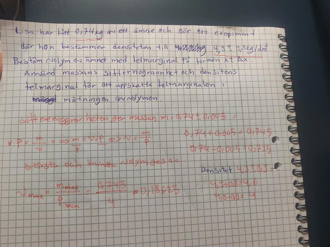 Hej alla kan någon förklara till mig hur kan man komma till siffrenogranhet ? I uppgiften står 0,74kg sen jag har kollat facit det står 0,74+-0,005 ,jag vill veta hur faciten har kommit på siffran 0,005 ?