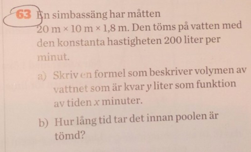 Jo. Läs uppgiften igen. Vilka mått har bassängen?