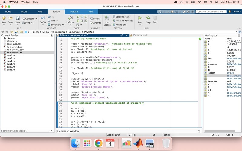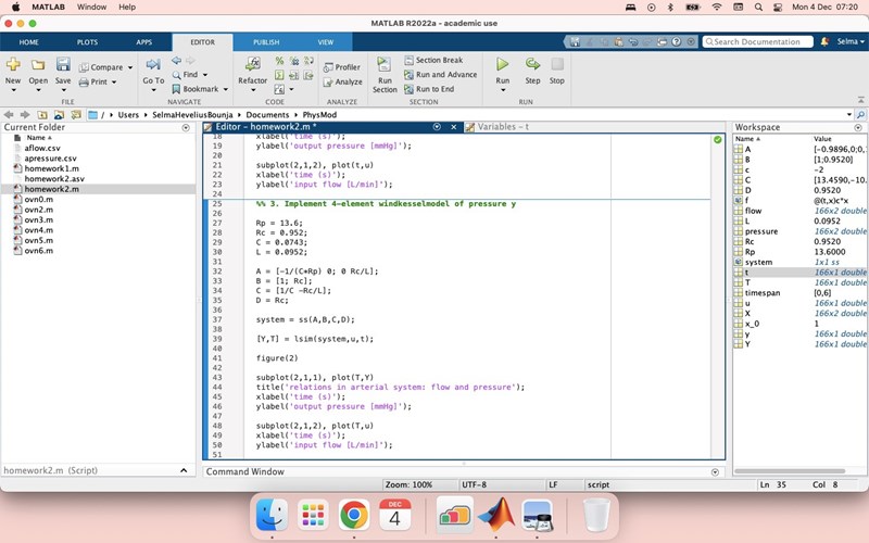 där "lsim" simulerar lösningen till ekvationssystemet av differentialekvationer. Jag antar att jag får inkorrekta kurvor då jag inte har något "initial value" givet i "lsim", men jag vet inte hur detta skall uttryckas. Dessutom misstänker jag att insignalen "u" måste uttryckas som en funktion av "t" men jag vet inte hur.
