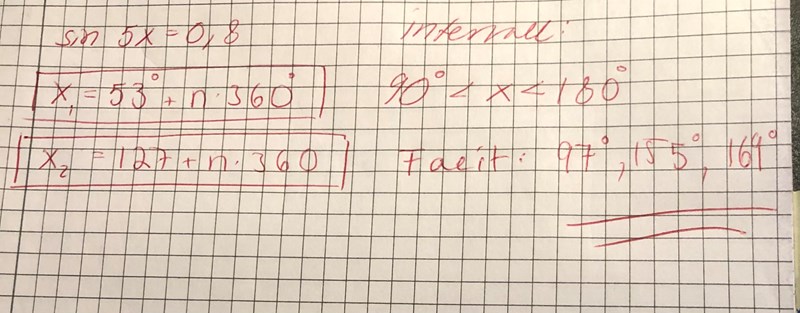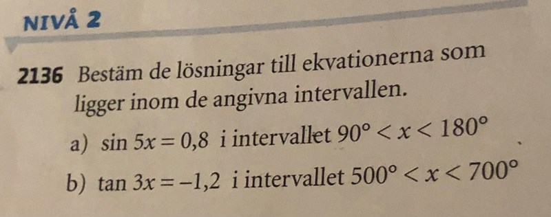 Sin 5x= 0,8 och intervall