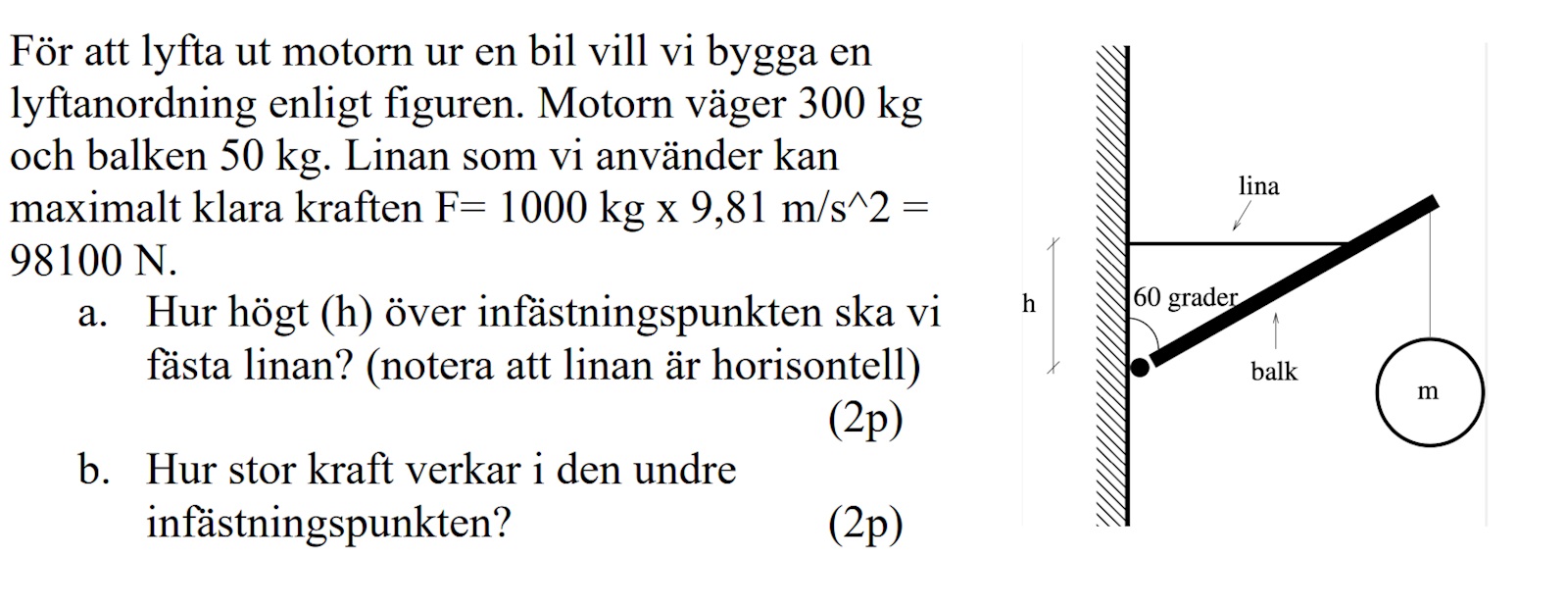 Jag håller på lösa denna frågan och är på a uppgiften. Det gick bra till jag skulle börja räkna, jag satte h =