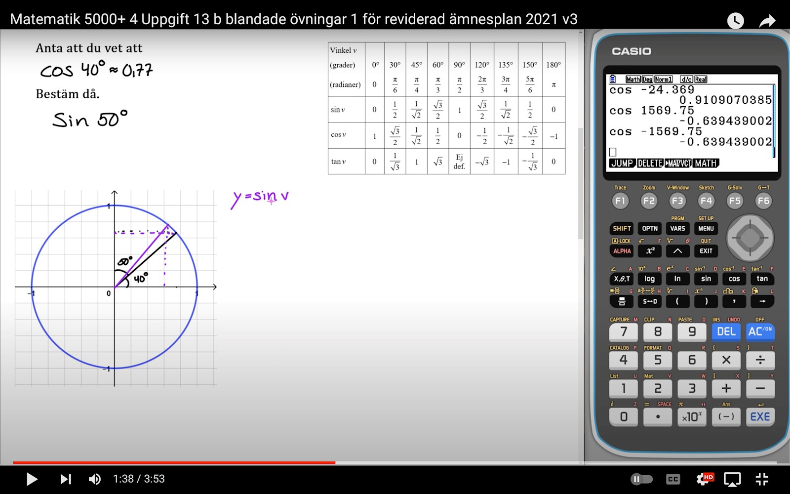 Är inte helt säker på att jag förstår hur sin 50º är samma som cos 40º? Är det för att man mäter x värdet på cos 40º och det är som att mäta y-värdet på 40º från y-axeln? Sin är ju 50º men den är då 40º från y-axeln