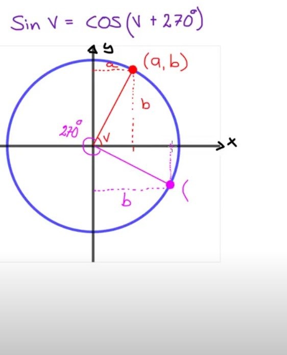 Man ska bevisa sambandet Sin v = Cos (v+270). Jag kollade lösningen och jag förstår allt förutom hur man räknar vinkeln 270, alltså hur man går 270 grader.