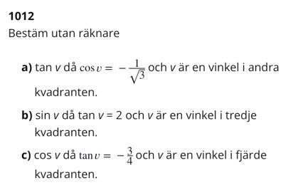 sin v då tan v = 2 och v är en vinkel i tredje kvadranten