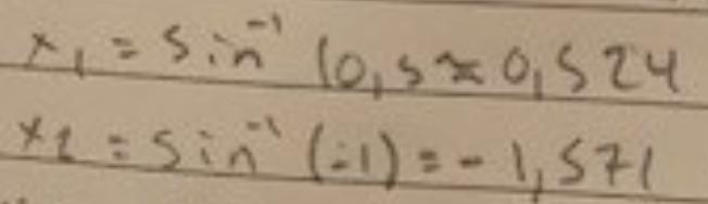 x1= 0.5       x1=sin⁻¹ (0.5 avrundat till 0.524