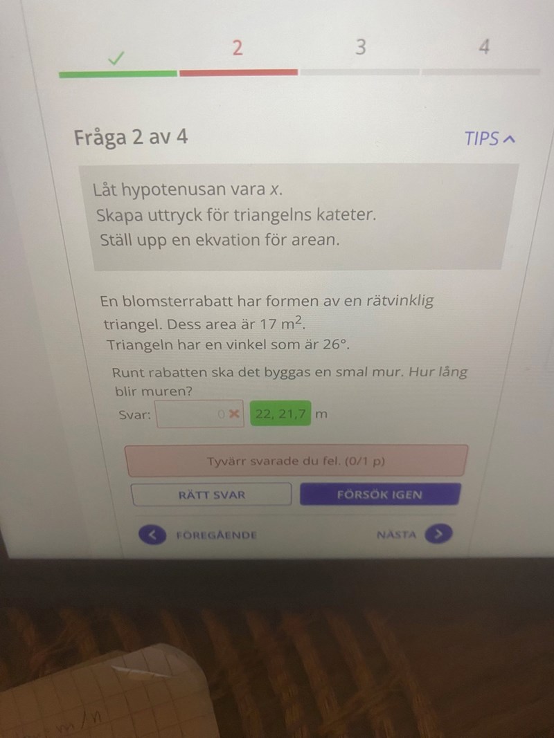 - Rita upp en rätvinklig triangel med en vinkel på 26 grader utritat i ett hörn.