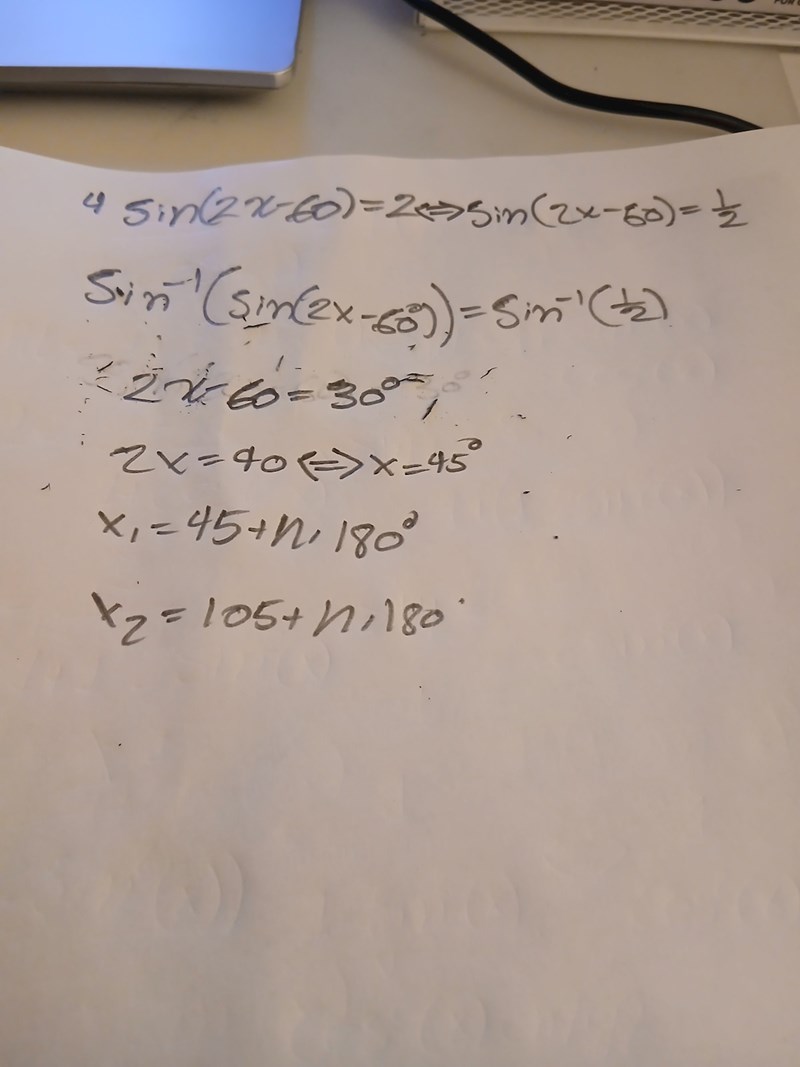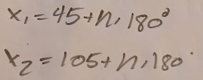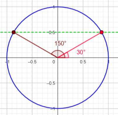 Grundekvationen ger två lösningsskaror. Det finns ju två punkter på enhetscirkeln där -koordinaten är 1/2. Dessutom kan man lägga till hur många hela varv som helst.
