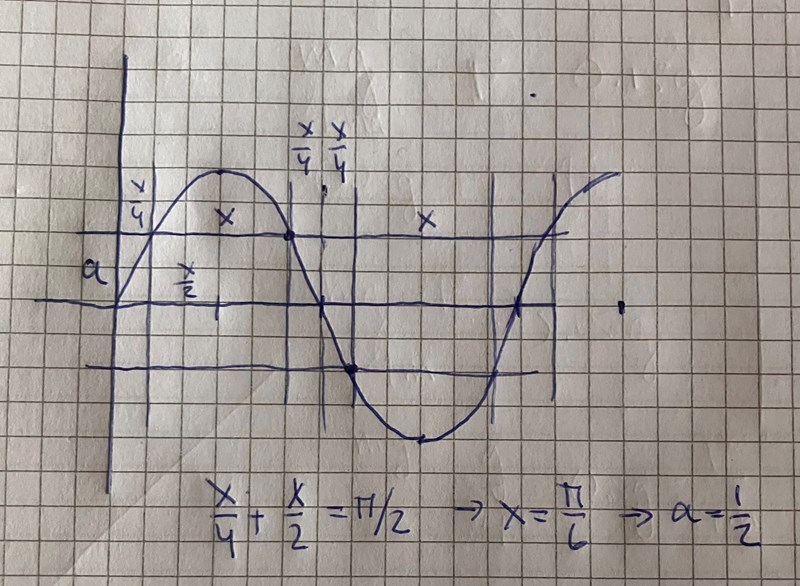 Så x/4+x/2=pi/2 o s v. a=sin pi/6=1/2