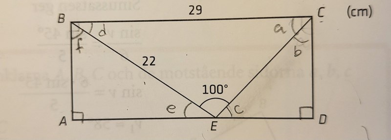 Vinkeln bör nog inte vara 43°, så resten av uträkningen drabbas av följdfel.