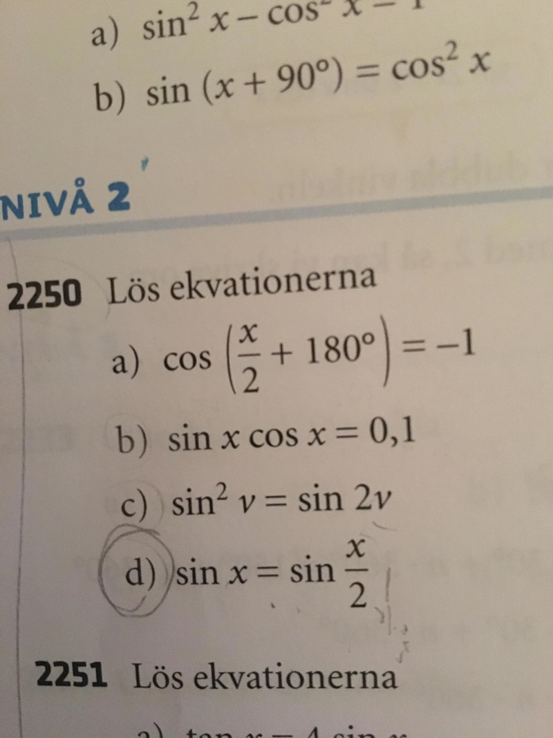 Den "triviala" lösningen är ju att x=0 + n*2pi