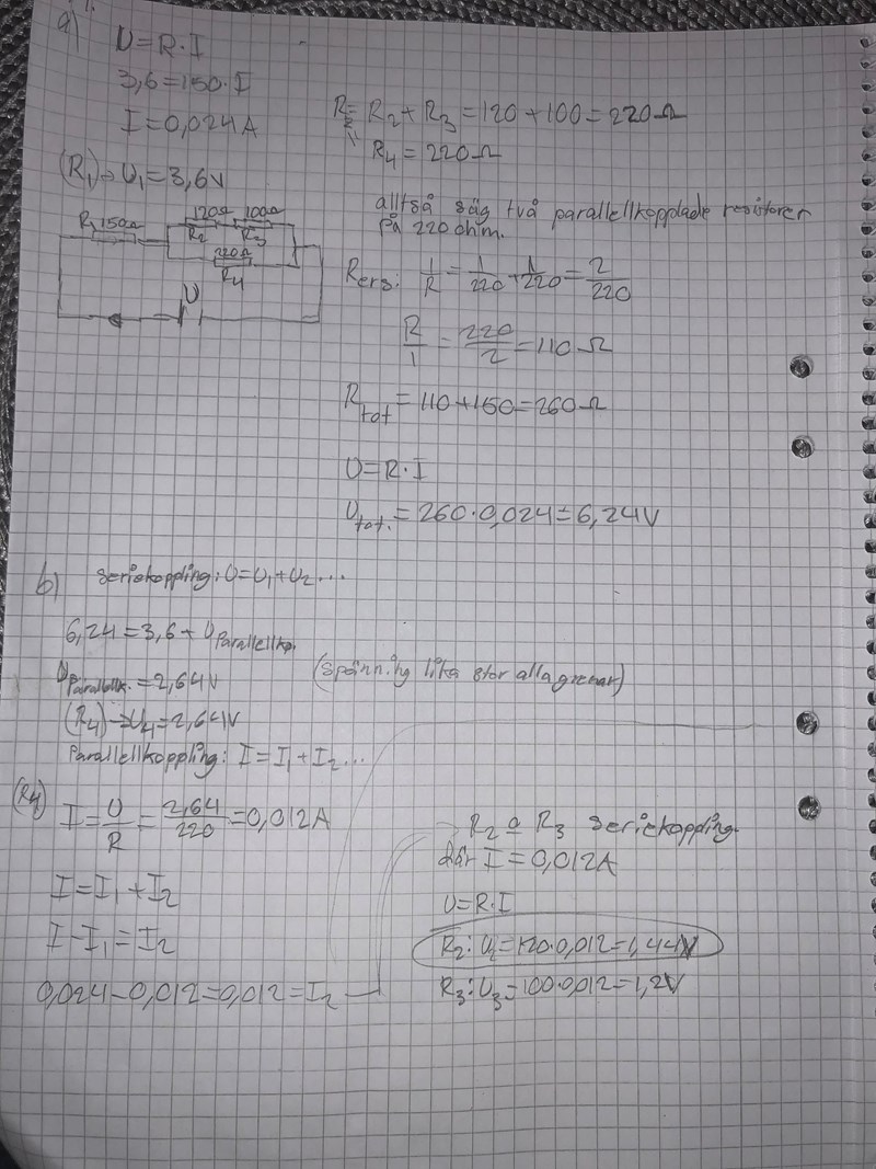 a) Parallellkoppling: 220//220 = 220/2=110ohm