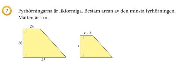 Skriv en rubrik som beskriver trådens innehåll. På så sätt hjälper du andra som söker efter samma eller liknande fråga på nätet. Rubriken har nu ändrats från "Sitter helt fast i ett tal om geometri" till "Beräkna arean av fyrhörning".