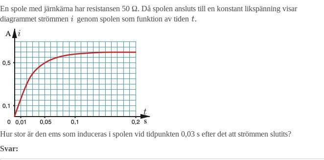 Pieter Kuiper skrev:Tänk på varför strömmen vid t=0,03 s inte är lika stor som efter lång tid.