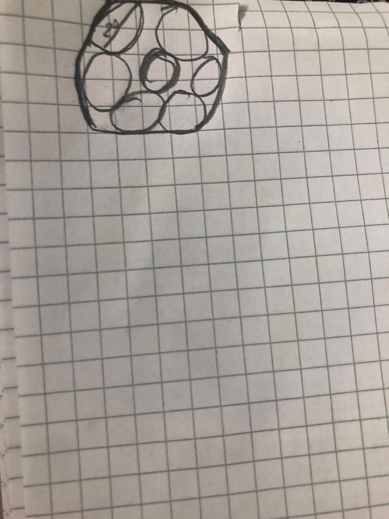 Okej? Jag tänkte att jag kunde räkna ut diametern totalt för alla 6 bollar , 20*6 =120 cm. Vad blir steg 2?