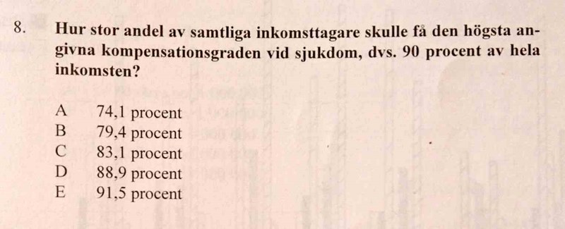 Där förstår jag inte varför svaret är 74% (A). Jag har svarat 83.1.