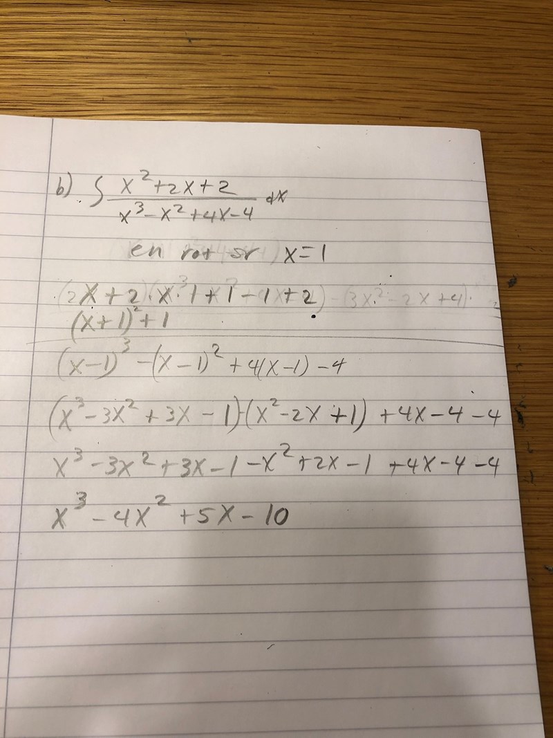 Du kan ju köra polynomdivision. Kan du skicka på hela uppgiften? Är x=1 en rot till den primitiva funktionen eller det som integreras?