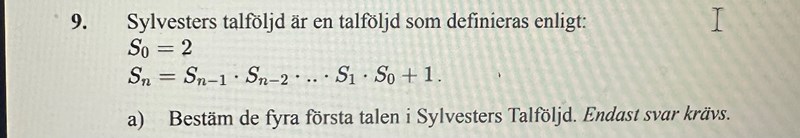 S_{n-1} = ∏_0^{n-2} S_i + 1, dvs. ∏_0^{n-2} S_i = S_{n-1}-1 som sätts in i ovan;