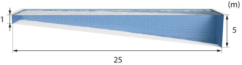 Om du bara menar arean av "nästan-trianglen", så dela in den i en rektangel som är 1 m gånger 25 meter och en triangel med basen 25 m och höjden (djupet) 4 meter.